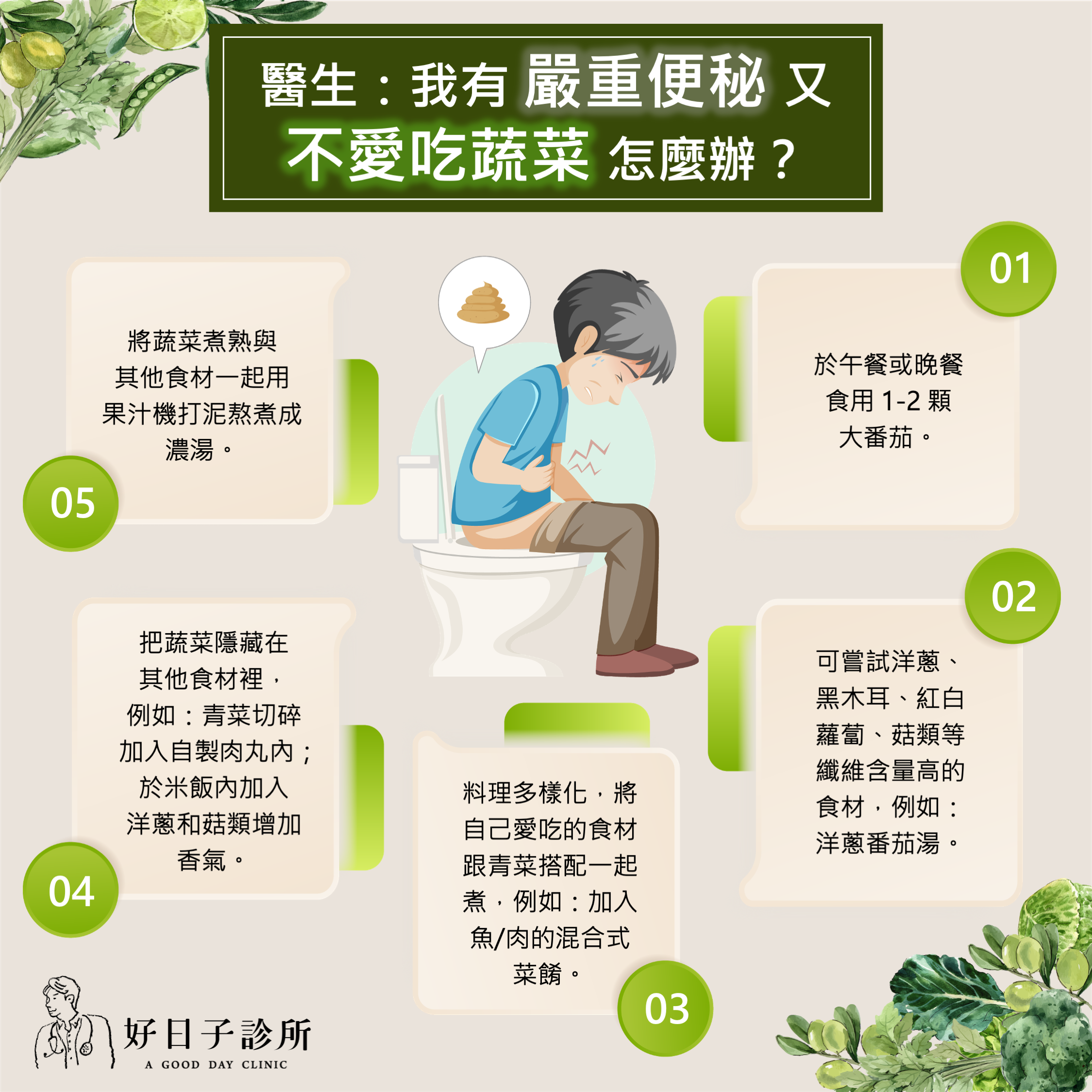30秒談減重|醫生我有嚴重便秘又不愛吃蔬菜怎麼辦?(文:李文祺醫師)