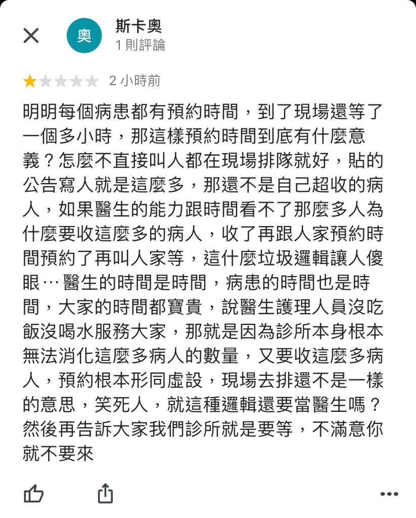為了減少負評而加速亂看病人?還是我直接設定一個鬧鐘,五分鐘時間到就把病人趕走?
