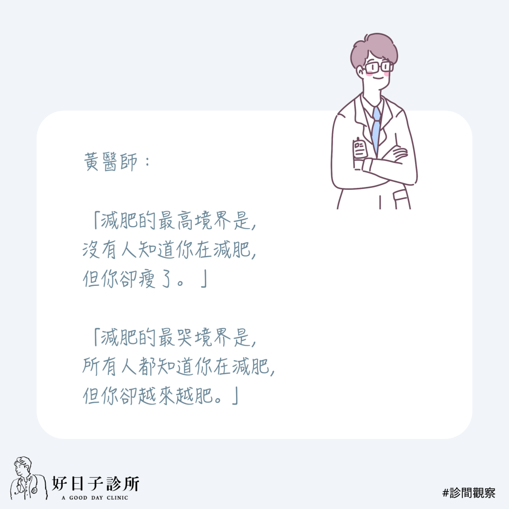 院長聊|診間對話 part.2 2021-11-022022-07-12 luchuangtw 黃醫師幫病人減重這麼多年來,在診間觀察到減重百態。 有哭有笑,有常見的迷思,也有幾句突破盲點的金句,跟各位朋友們分享,希望能在減重這條崎嶇的路上給你一些正能量(或負能量😂) #診間對話 #診間觀察 *圖片製作:好日子企劃工作室 分享此文: 按一下即可分享至 X(在新視窗中開啟) X 按一下以分享至 Facebook(在新視窗中開啟) Facebook 喜歡 正在載入... 相關