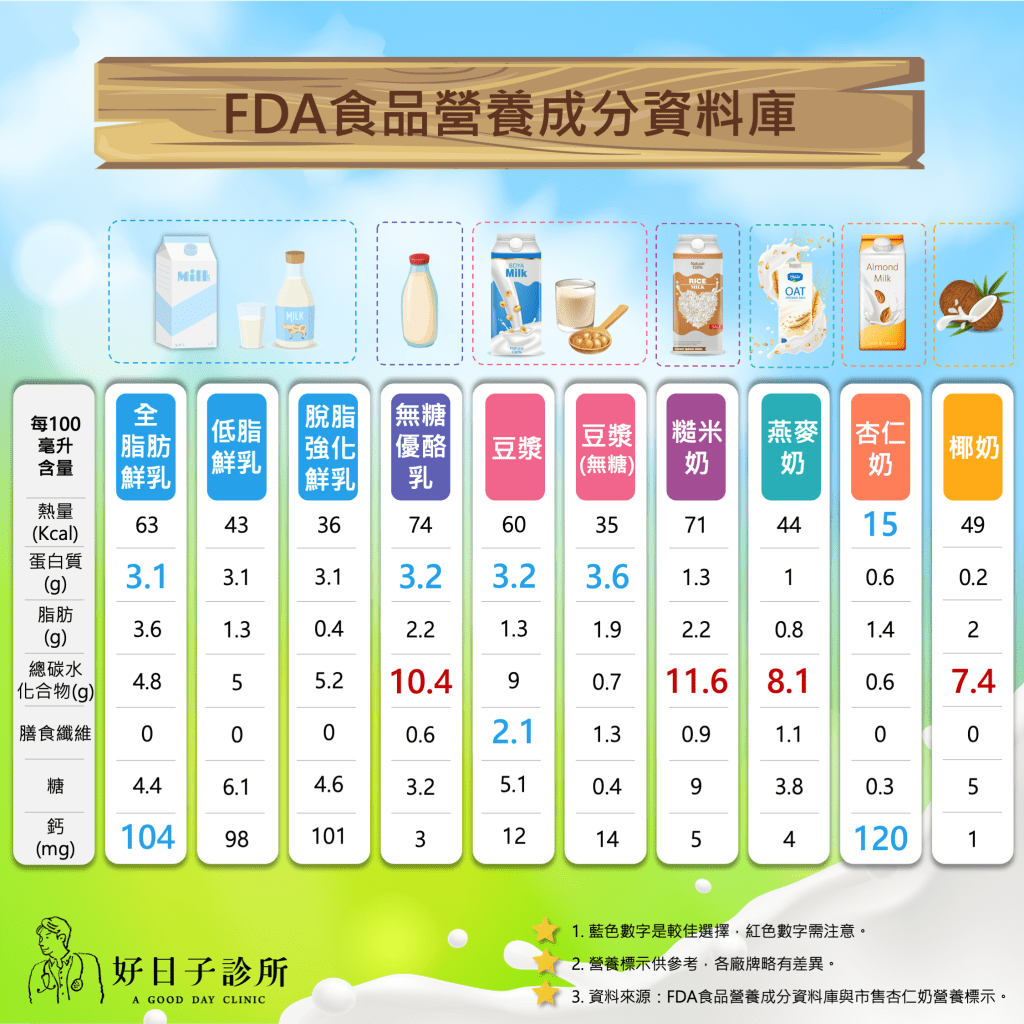 資料來源:FDA食品營養成分資料庫與市售杏仁奶營養標示
