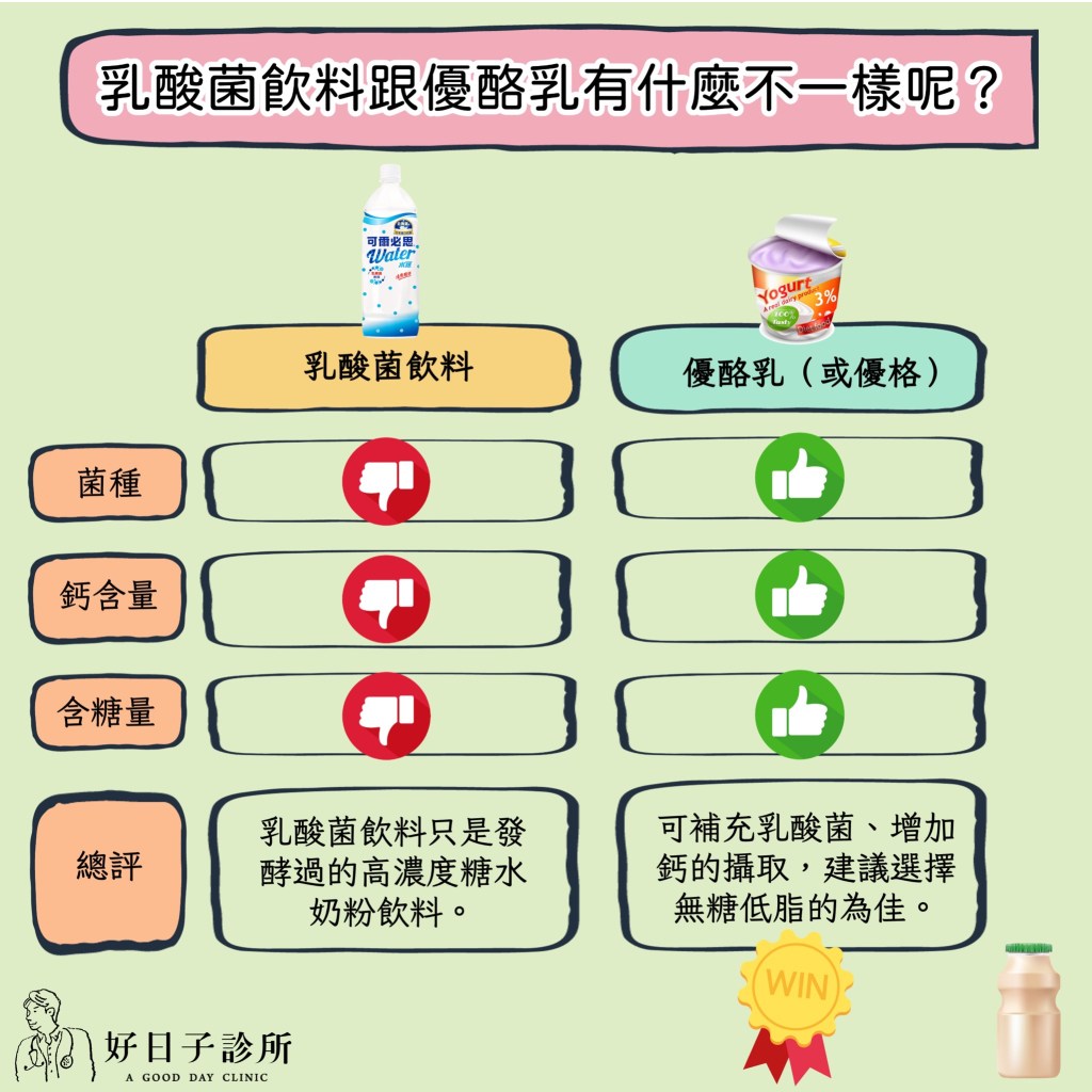 我們要先分清楚乳酸菌飲料並不等於使用牛奶發酵的優酪乳或優格。