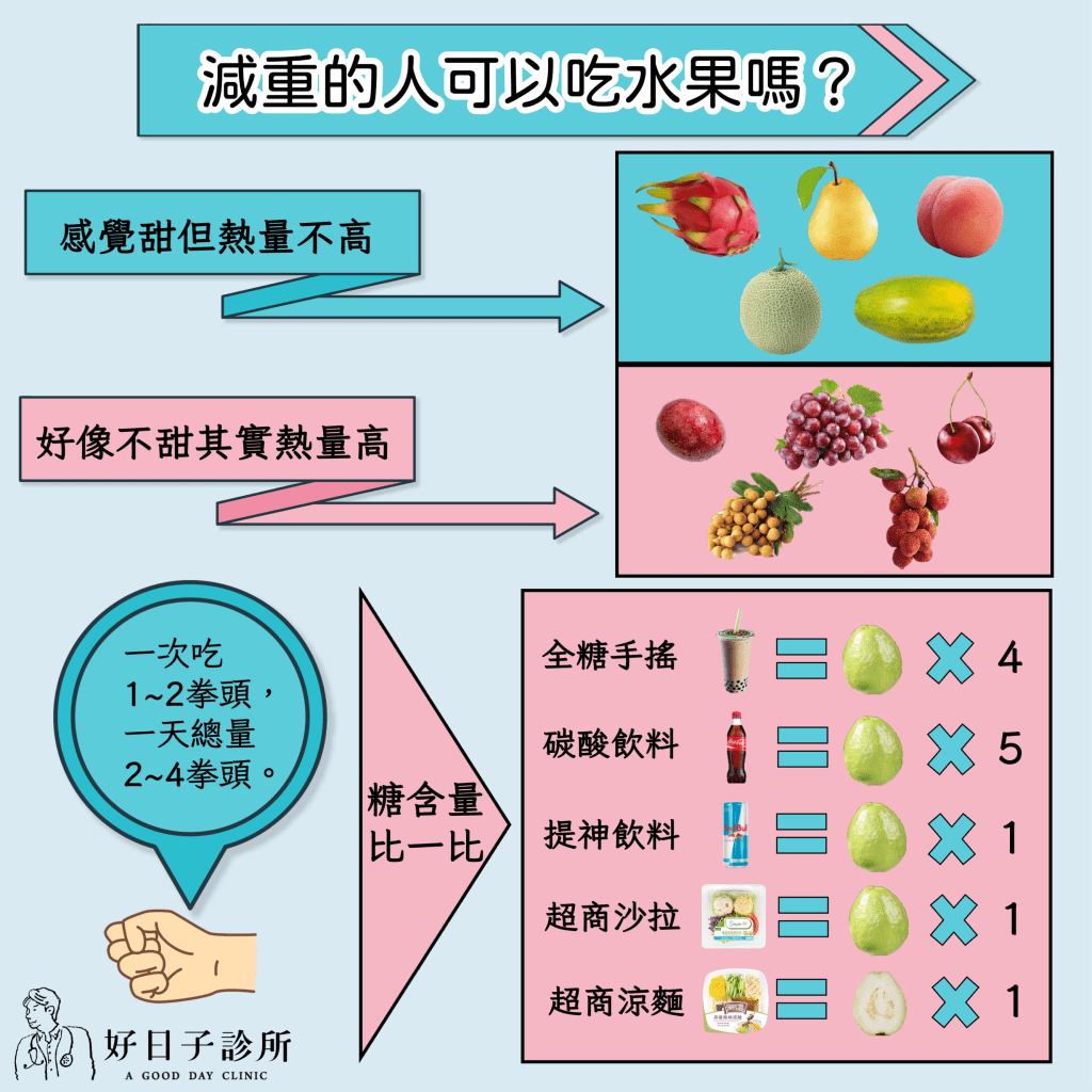 感覺甜但熱量不高的水果還有:紅色火龍果、水梨、水蜜桃、哈蜜瓜、木瓜…