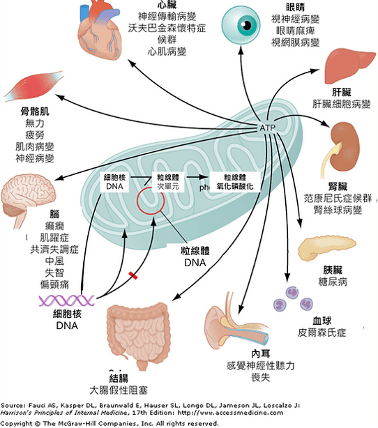當發電機功能不良,細胞沒有足夠能量,就會導致慢性發炎,及老化相關的疾病,包括胰島素阻抗、代謝症候群、第二型糖尿病、心血管疾病,及阿茲海默症。