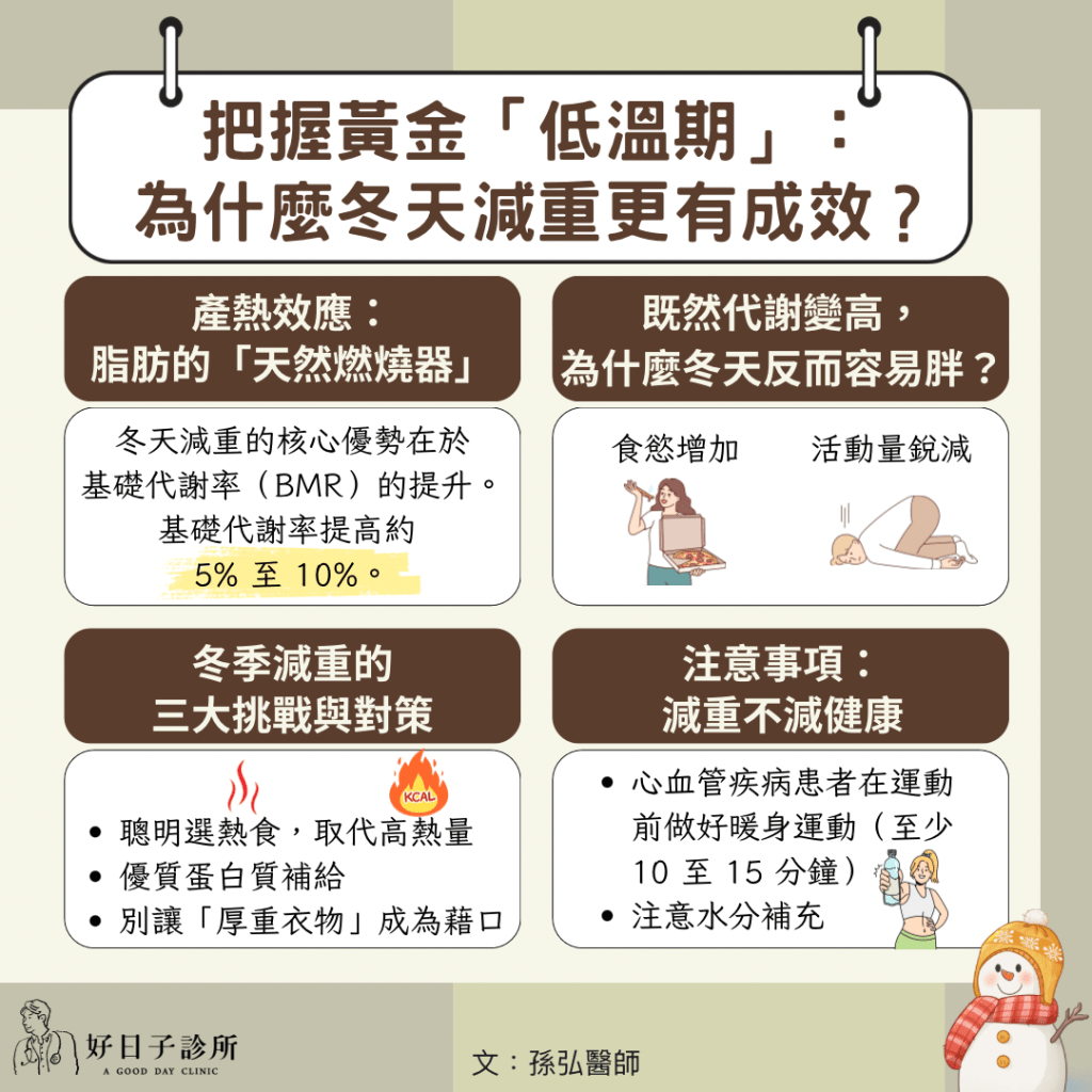 隨著氣溫驟降,很多人會自動進入「冬眠模式」,認為寒冷的天氣是減肥的阻礙。然而,從生理科學的角度來看,冬季其實是減重的黃金季節。只要掌握正確的方法,冬天瘦身的效果往往比夏天更為顯著。