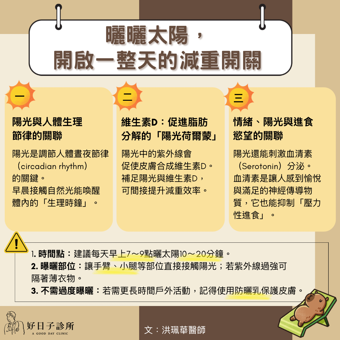 30秒談減重|曬曬太陽,開啟一整天的減重開關 (文: 洪珮華醫師)