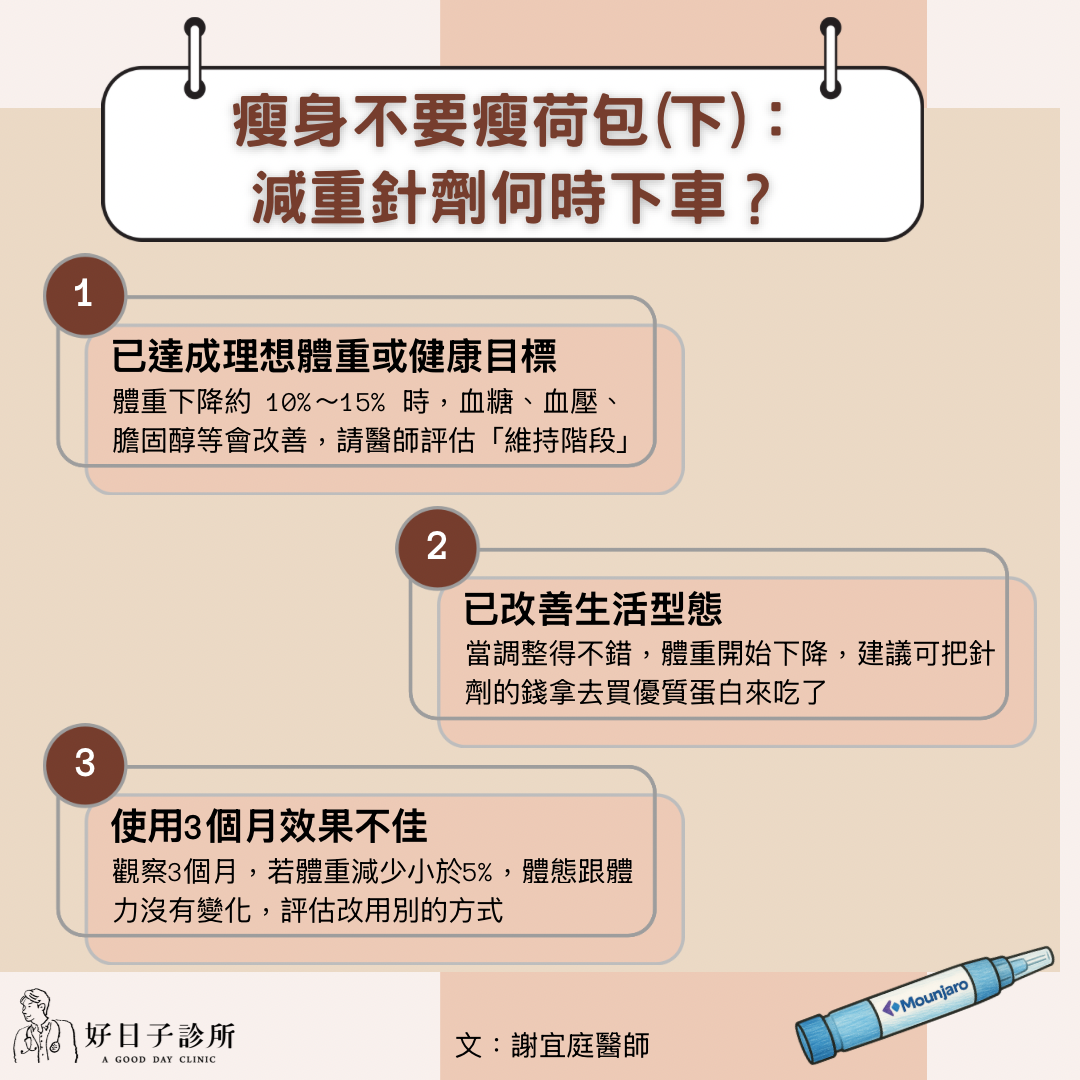 上集我們討論了減重針劑的效果,但其實在好日子的減重診間,停藥才是學問所在。想安全「下車」不復胖,需要計畫、監測 [...]